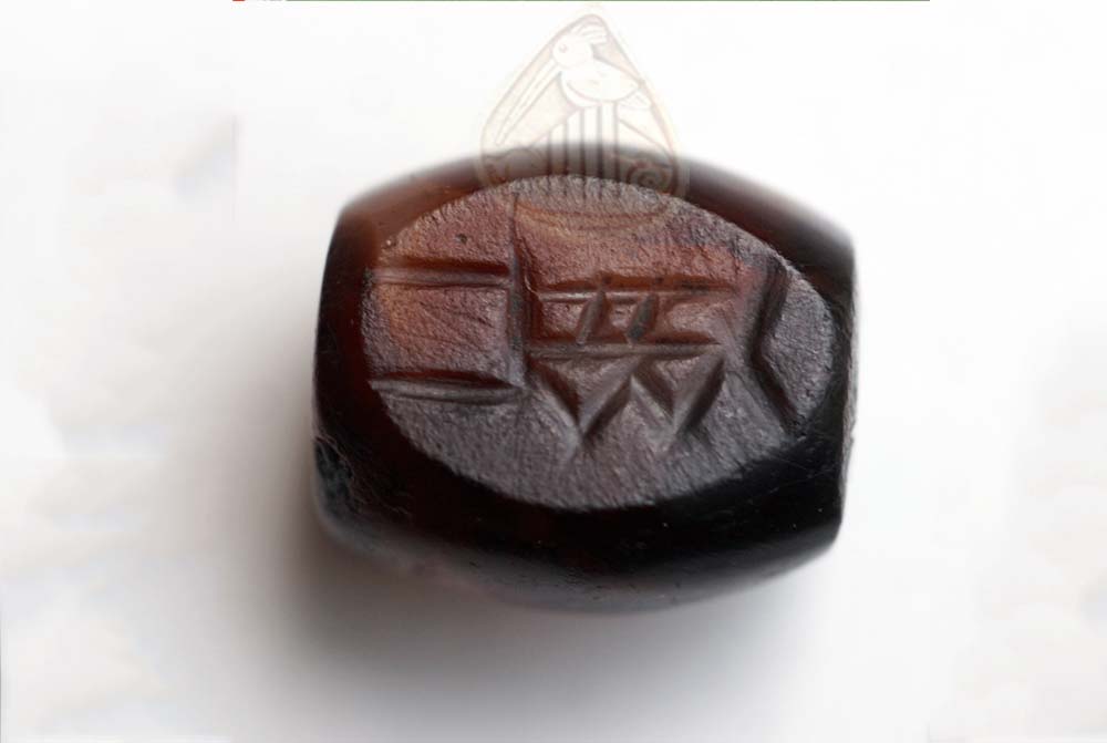 A Brown Seal of Agate in oval shape, with Musnad characters on it (monogram).