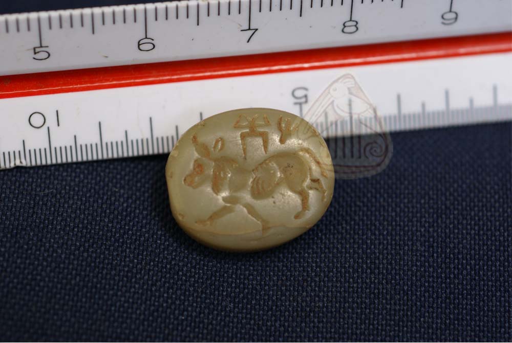 An Oval Seal deeply carved with Musnad inscription and a shape of a bull.