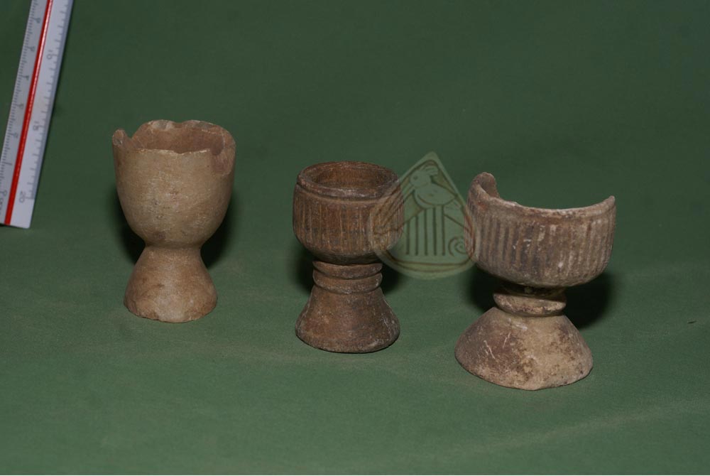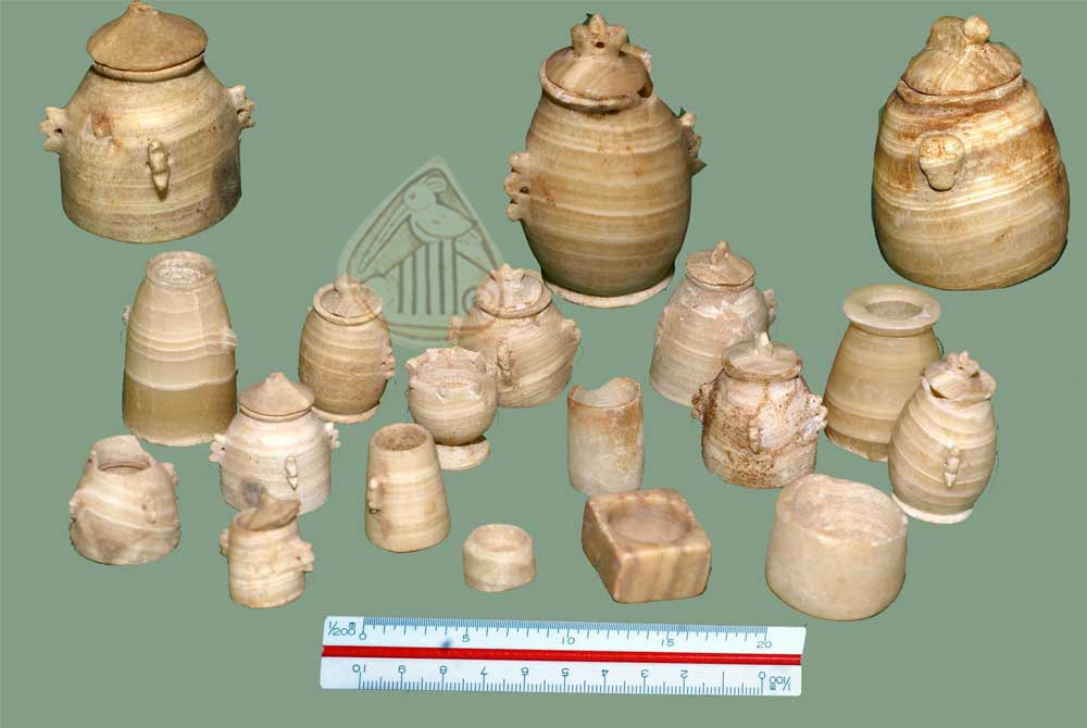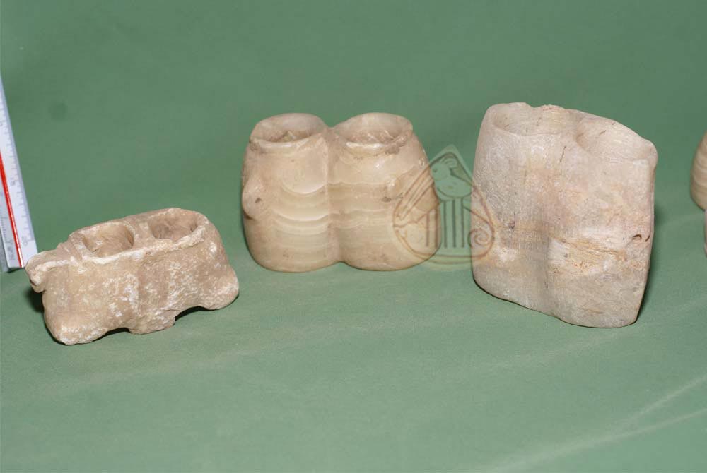 A group of twin vessels made of marble in different shapes